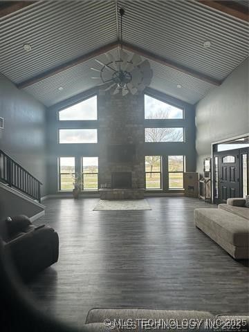 This serene setting is laid out on over 6-8 acres. This gorgeous home is a 2 Bedroom, 3 bath, 2 car garage with spectacular views. The family room has a beautiful stone fireplace with picturesque views. Wood floors. The kitchen offers stainless steel appliances & a gas range with designer lighting throughout and a large island which is great for family gatherings. Fabulous laundry room is very large with a sink, area for hanging and folding clothes and also has lots of storage cabinets. Large bedrooms & bathrooms with custom cabinets. Built ins in the closet. Both bedrooms have farmhouse windmill ceiling fans. This is a must see!