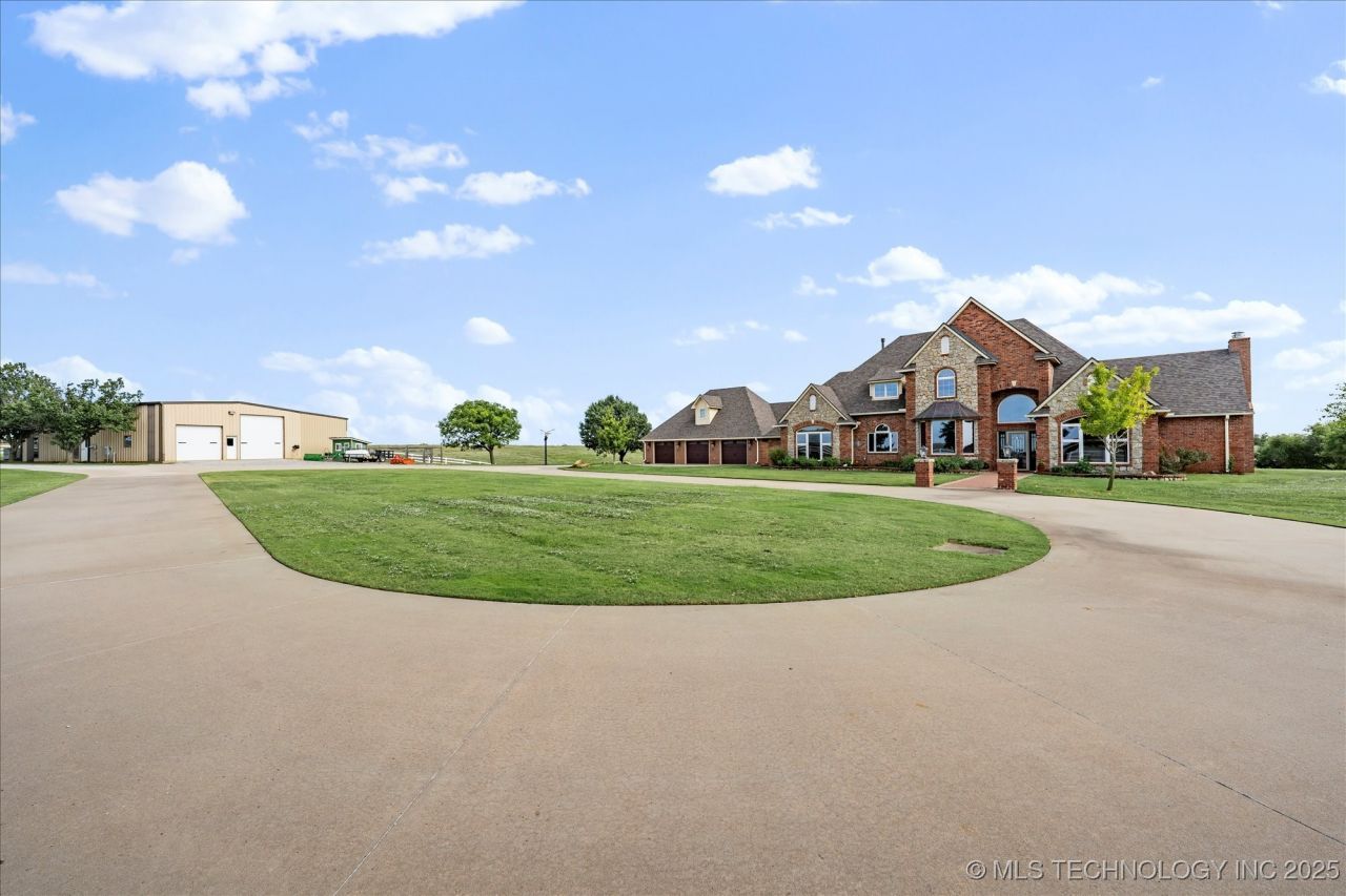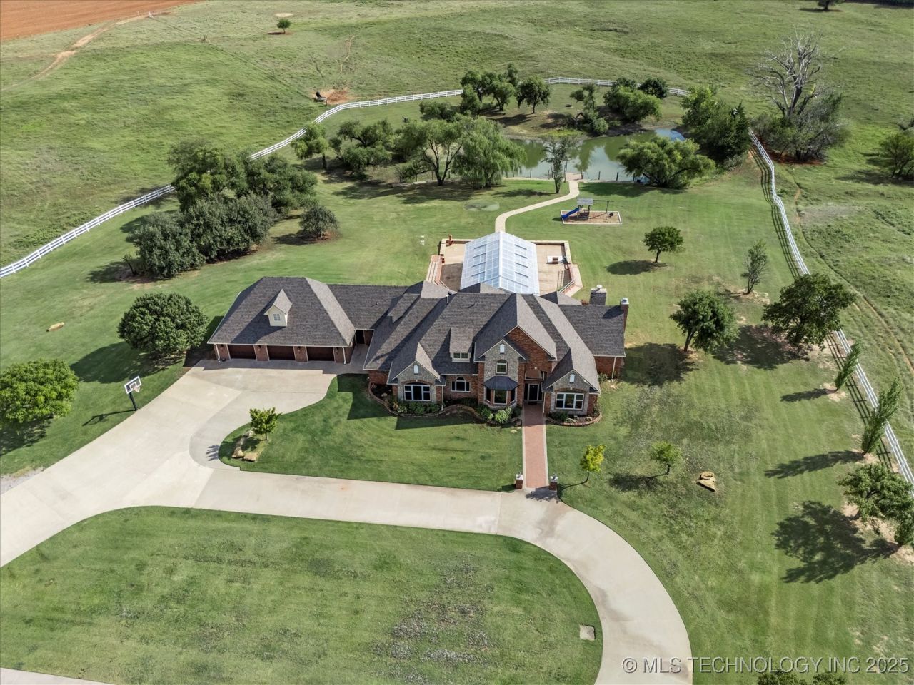 Experience private country living at its finest just minutes from Enid. This exceptional, smart home property offers 52 acres of beautifullymaintained land featuring a pond with boat dock, gated entry, and an impressive list of upgrades and amenities designed for comfort,recreation, and self-sufficiency. The home features a downstairs primary suite with steam shower, and electric fireplace, creating theperfect retreat. The main living area includes a wood-burning fireplace, while the front sitting room features another electric fireplace,offering warmth and charm throughout. The gourmet kitchen is a chef's dream, complete with Sub-Zero refrigerator, Wolf double ovenswith 4 gas burners, griddle, and French top, two dishwashers, built-in ice maker, center island, and custom cabinetry throughout.Additional amenities include a wine cellar, private fitness room/bedroom garage apartment, a flex space with handicap accessiblebathroom, whole-home Generac generator, security camera system, and an oversized 3-car garage. Enjoy year-round relaxation in theenclosed inground swimming pool featuring a retractable roof, or entertain guests outdoors around the circle driveway and openacreage. The barn is insulated, heated, and includes a car lift, lean-to, two horse stalls (one converted into a custom chicken coop), plusan additional standalone chicken coop. The property is well-equipped for livestock and maintenance with multiple cattle waterers and aninground sprinkler system all supplied by the property's water well. A new roof was installed in July 2025. A truly one-of-a-kind propertyoffering luxury, function, and privacy-perfectly blending country life with modern convenience.