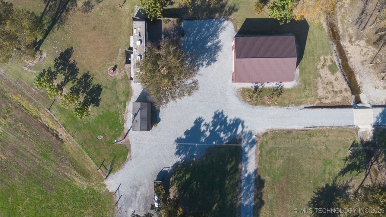Picturesque 20 acres that checks all the boxes. Highway frontage, wet weather creek and a beautiful home site with ammenities for effecient living. Large 44 foot RV that stays; setup as a permenant affixed structure skirted with a large deck/patio area. Adjacent is a nice 30x40 shop with 220 amp service and a converted building with a minisplit for living, entertaining or office space. The side yard is a garden oasis, complete with many raise beds and a greenhouse. Land also features a dog run/chicken coop. Utilities are in place: rural water, septic system, electric, bolt internet and satelite. Property is fenced and cross fenced with a pond. Just minutes from I-44 and Grand Lake with options of Residential, Commercial, or Farm and Ranch, this property is a great investment.