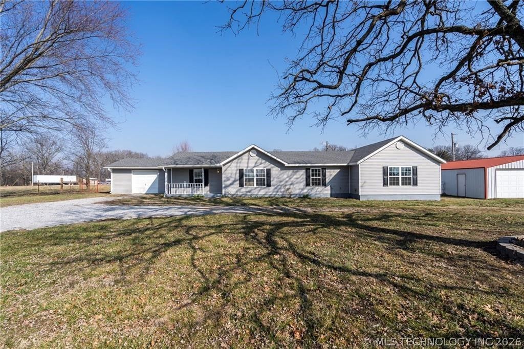 Spacious home offering 4 bedrooms, 2 baths, & a 1-car garage, situated on 1.12 acres barely across the OK/AR state line! Conveniently located minutes from Siloam, Colcord, or Gentry, this property provides easy access while enjoying a peaceful edge-of-town setting. All-electric & featuring tile & LVP flooring, granite counters, black/SS appliances, tile backsplash, solid wood cabinetry with extra storage, a walk-in pantry with barn-style door, & updated lighting throughout. Wired for fiber optic-perfect for working from home. Primary suite is thoughtfully designed with double wall outlets on every wall, a jacuzzi soaking tub with in-line water heater & recirculating pump, heated tile floors, temperature-controlled resin walk-in shower, & a large walk-in closet with built-in dressers. Gated & fenced yard with mature trees. 40x30 insulated red iron truss metal shop with concrete floors & electric-ideal for hobbies, storage, or business use. Public water & septic. Roof/siding 6-7yr.