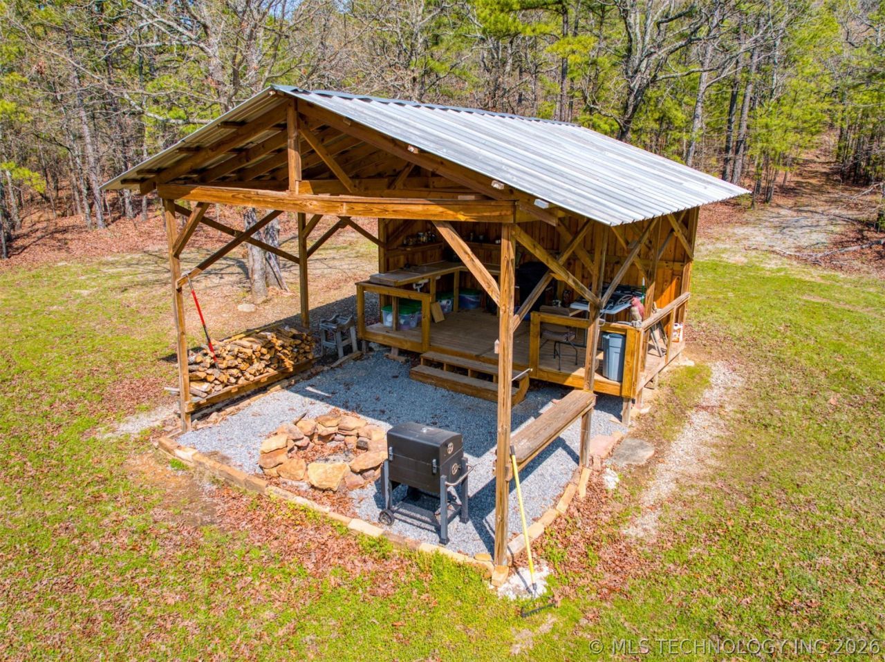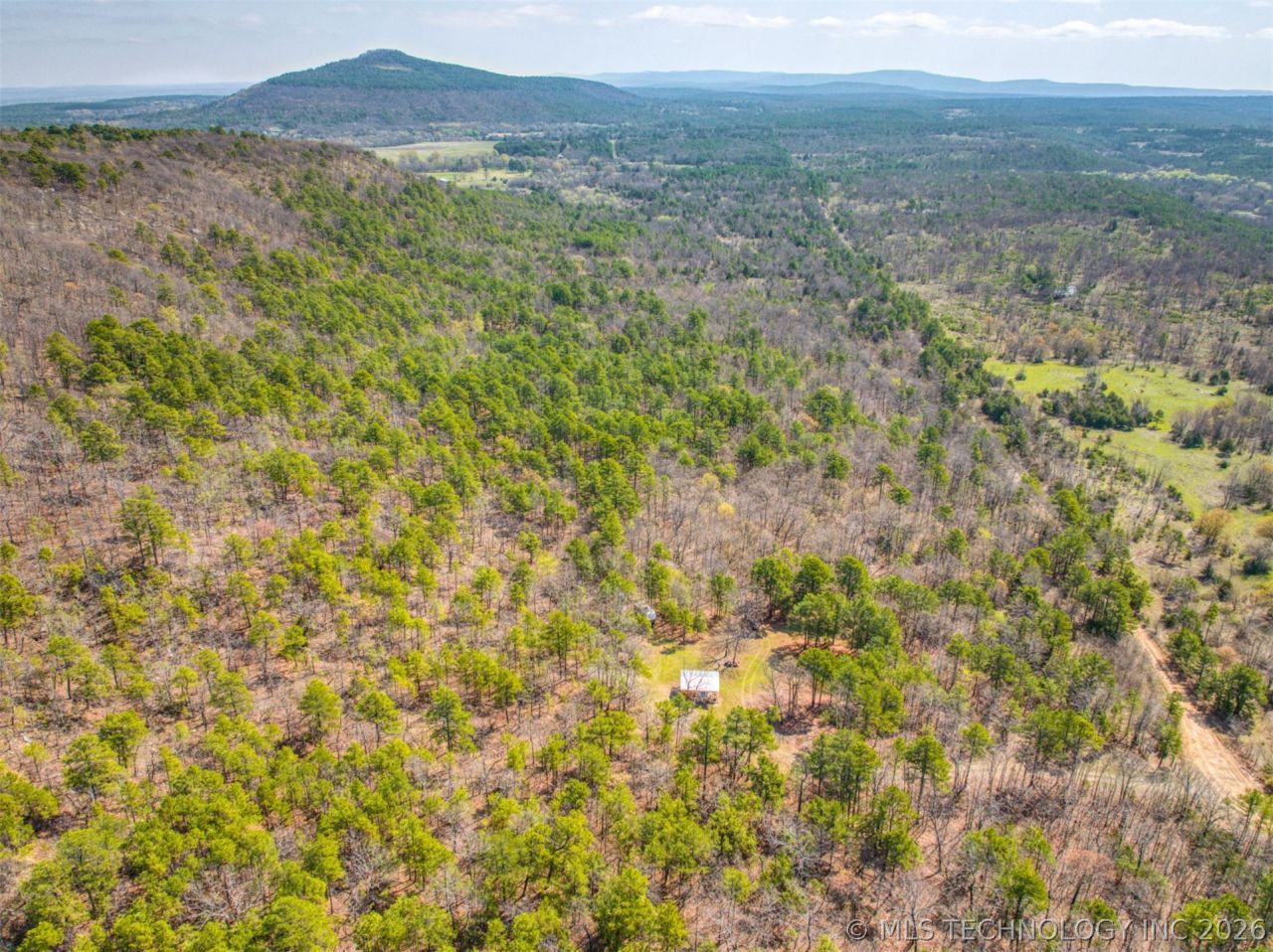 Welcome to Panther Mountain Nestled near the renowned Robbers Cave in Kinta, Oklahoma, this remarkable almost 80-acre property is an absolute dream for nature enthusiasts, hunters, and anyone seeking serenity. Boasting a gated entry for privacy and security, the land is designed for both relaxation and adventure. Multiple RV sites already have septic systems installed, making this property ready for your plans. The stunning stocked ponds, complete with charming bridges, offer the perfect setting for fishing or simply unwinding amidst nature's beauty. From the mountain tops, you'll enjoy breathtaking views that epitomize tranquility. True to its reputation as a hunter's paradise, the land is abundant with wildlife, including deer, turkey, bears, and more. Whether you're envisioning a peaceful retreat, preparing for hunting season, or craving the calm of natural surroundings, this property checks all the boxes. Located in scenic Haskell County, don't miss this rare opportunity to make it yours. Reach out today for more details or to arrange a visit. Cabin site already started as well as a big outdoor pavilion with outdoor kitchen, fire pits, etc. already built and ready for your hunting paradise. Drone photography coming soon.