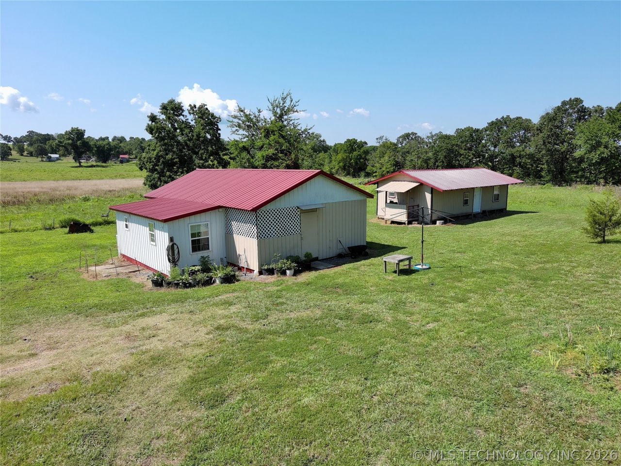 Come view this gorgeous fertile Oklahoma farmland with a small living quarter. That has a small house livable and has been maintained very well. Home features are a small kitchen, 1 full bathroom, hot water tank, 4 space heaters, and 2 bedrooms. Utility features are city water, holding tank for sewage, electricity for all heating. Owner also built a small unfinished house wood frame, roof, and siding already installed. Also has 2 large sheds can be used for storage. The shed by the front gate has a well that has been dug only. Pictures does not do the property justice. Ideal green pastureland that would be perfect for cattle, farming or haybales. The pastureland is gated and separated majority of the lot is fenced but not all. The lot also has access to one large pond & partial access to another large pond. Property also includes 2 chicken broiler houses never used by owner. One of the chicken houses was thoroughly cleaned and part of it was converted into a partially finished indoor grow for any vegetables or plants. Some electricity & HVAC installed in this part of the chicken house. Where the chicken houses are located there is a water well & 400-amp electric panel, previously used for the chicken houses. Property is centrally located as well right off Hwy 26, only a 4-minute drive to McCurtain, only a 10-minute drive to downtown Keota, and only a 20-minute drive to Stigler. Just released, due to title issues. Sold in as is condition only.