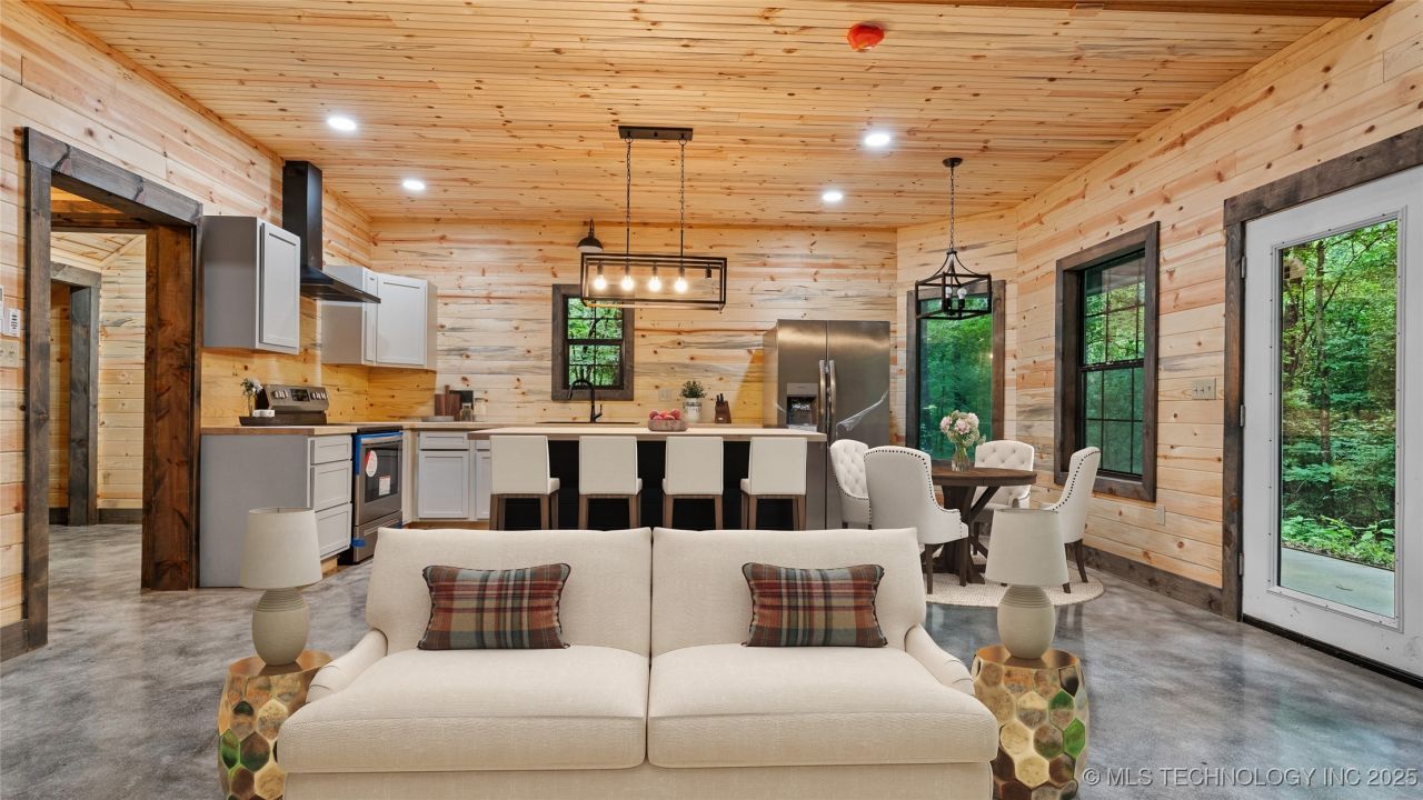 Back on the market, at no fault of Seller! Your Dream Escape Awaits Near the Blue River! If you've been longing for a peaceful retreat where nature meets comfort, this is the one you've been waiting for. Just minutes from the heart of iconic Tishomingo, Oklahoma, and on 2.5 acres of scenic countryside, this brand-new custom home offers the perfect mix of adventure and tranquility. Imagine waking up in a home that feels like a luxury lodge - with blue pine wood from Broken Bow wrapping the interior in warmth and character, and stained concrete floors that blend beauty with durability. This 3-bedroom, 2.5-bath home was built with intention and care, from the gourmet kitchen with butcher block countertops and brand-new appliances, to the spa-like bathrooms with gorgeous tile surrounds. Step outside and you'll discover the true magic: a wraparound porch on the east side, perfect for sipping coffee while the sun rises, and an outdoor kitchen area made for evenings filled with laughter, grilled meals, and good company under the stars. Just a stone's throw from the Blue River, known for trout fishing, hiking, and hunting, this property is your gateway to Oklahoma's best outdoor adventures - while still offering all the modern comforts of home. Whether you're searching for a weekend getaway, a full-time escape, or a vacation rental opportunity, this home delivers rustic elegance, natural beauty, and everyday luxury in perfect harmony. Come see it - and fall in love with the life waiting for you here.