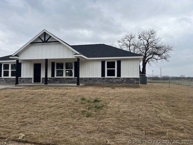Stunning new build in Caddo, OK! Take a look at the 3 bedroom 2 bath new construction home including 2 lots with large detached 2 car garage. Granite countertops, kitchen features beautiful white cabinets which continues throughout the home. Large open concept living area. Spacious detached 2 car garage with storage/work area. This is a must see home!