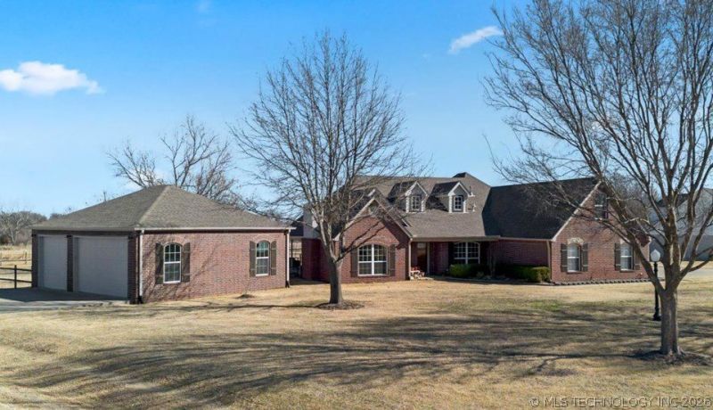 Hard-to-find beautifully updated 4-bedroom home on 1 acre with a fully insulated 28'x32' shop! Located at the end of a quiet road with peaceful views behind the property, this home offers space and functionality with only a 20-25 minute drive to downtown Tulsa! Inside you'll find a brand-new modern kitchen, updated bathrooms, fresh paint, new light fixtures, and soaring ceilings in the main living area with a cozy fireplace. The private primary suite includes patio access for enjoying quiet evenings outdoors. Upstairs flex space with closet makes a perfect game room, office, or guest area. The 28'x32' detached garage/workshop is fully insulated, ideal for hobbies, storage, projects, or extra vehicles. Plus, an in-ground storm shelter located under the garage floor adds valuable peace of mind. Major updates include: new windows, roof replaced 2016, HVAC replaced 2017, water heater replaced 2023 (all regularly maintained), and whole-house water softener included. Located outside city limits - no City of Collinsville taxes - and qualifies for USDA Rural Development Financing. With the acreage, insulated shop, storm shelter, and extensive updates already completed, this home offers exceptional value for the price!
