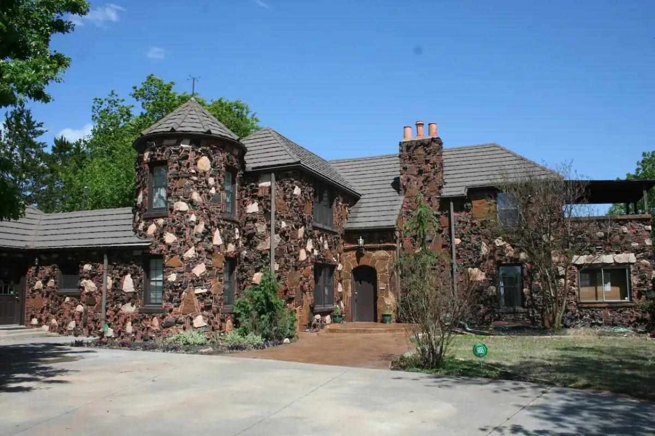 BEAUTIFUL 1930s historic property that is currently operated as a home and short term rental. "Castle" is known for its secret rooms and eclectic brick/stone work . Hot tub and tanning bed included with an option of ALL furniture, bedding, linen etc. You could rent this out on the day you close! Property is an ENTIRE city block. and includes a pool area that is managed/maintained by association, but owner also has use rights. Great bar area with 3/4 bathroom in basement. "Maid" quarters off of the kitchen. Other premium features include greenhouse, patio with a fire pit, turret bedroom, upstairs bedroom with balcony, multiple gas fireplaces, include 2 ovens, a generator, level 4 hail resistant roof, hidden rooms and so much more!