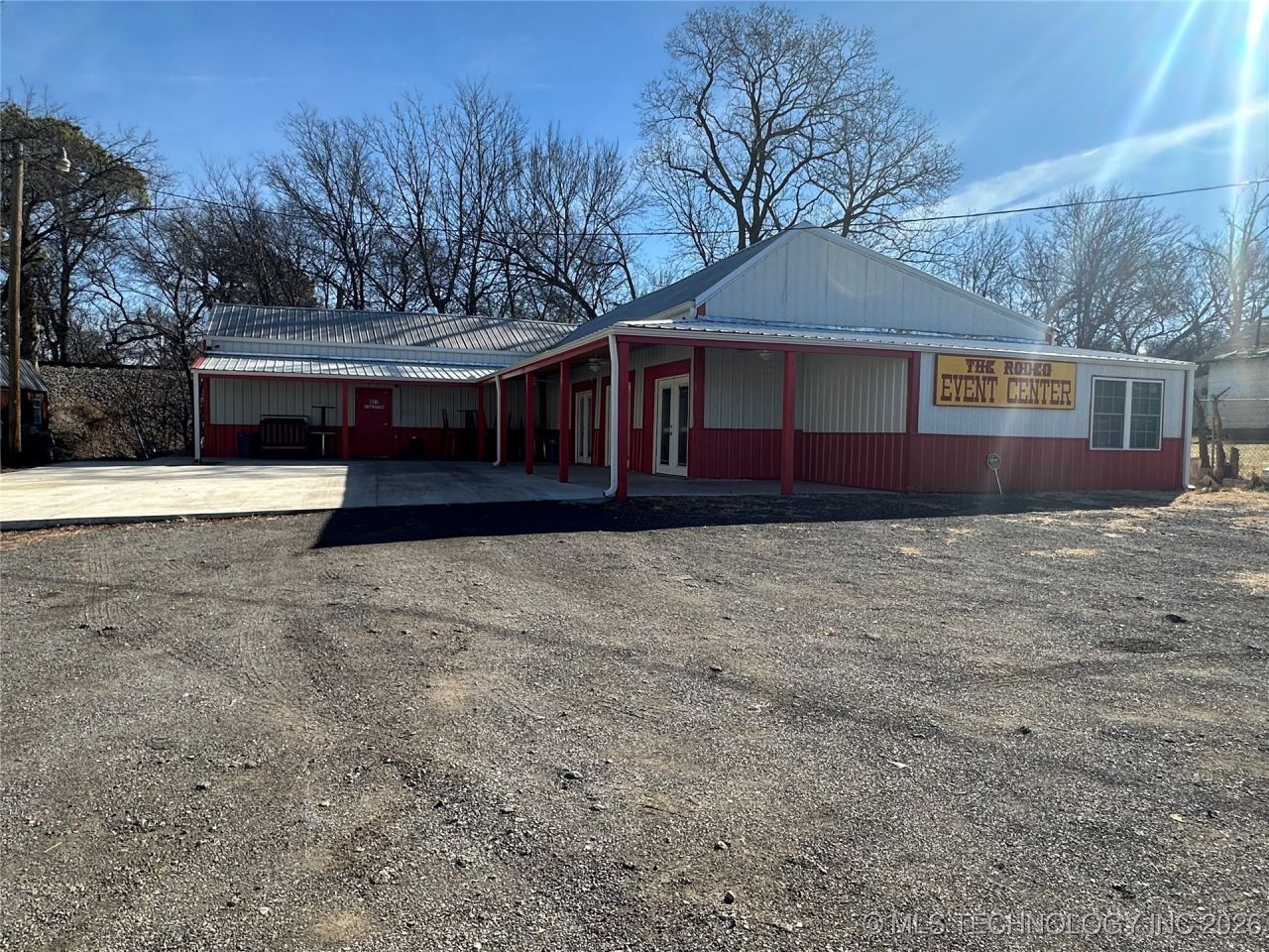 Versatile commercial building currently outfitted as an event center, offering excellent functionality and future potential. Zoned High Impact Heavy Industrial, this property features durable construction with metal siding, spray-foam insulation, and concrete floors. The building includes two bathrooms, dedicated office space and a make-shift kitchen. Electrical service is single-phase with a 400-amp panel, complemented by updated lighting throughout. Comfort is ensured with new HVAC and mini-split systems. Additional Storage Shed stays with the property. All tables, chairs, booths, stainless-steel sink, and security system remain, making this a turnkey opportunity for continued event use or easy adaptation to other commercial or industrial needs. Ample potential for a variety of business operations. Easy access to Hwy 75.